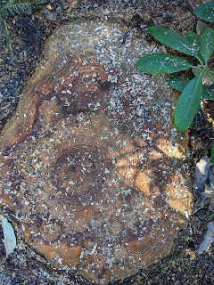 Vanwege een storm en de hoge leeftijd van de bomen werden deze winter enkele bomen in onze tuin gerooid. Met als gevolg een flinke stapel stammen.